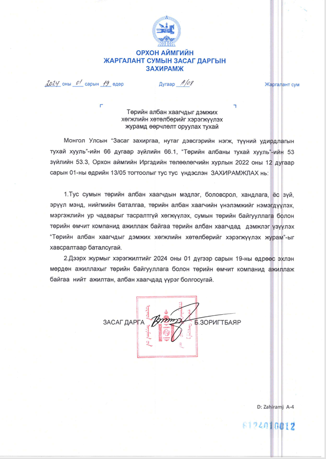 ХОЛБОО БАРИХ УТАС: 70396000