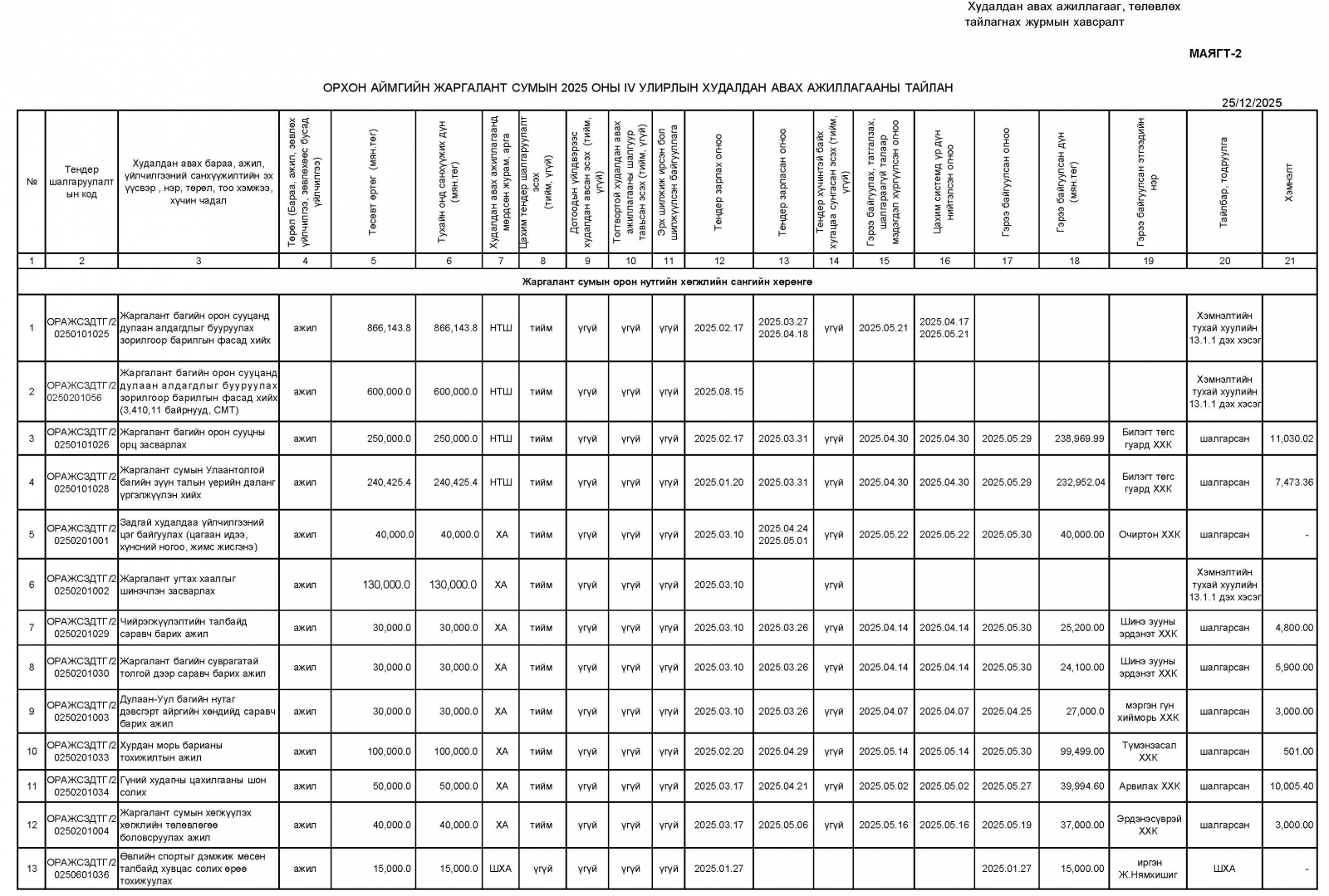 Худалдан авах ажиллагааны 4 дүгээр улирлын тайлан