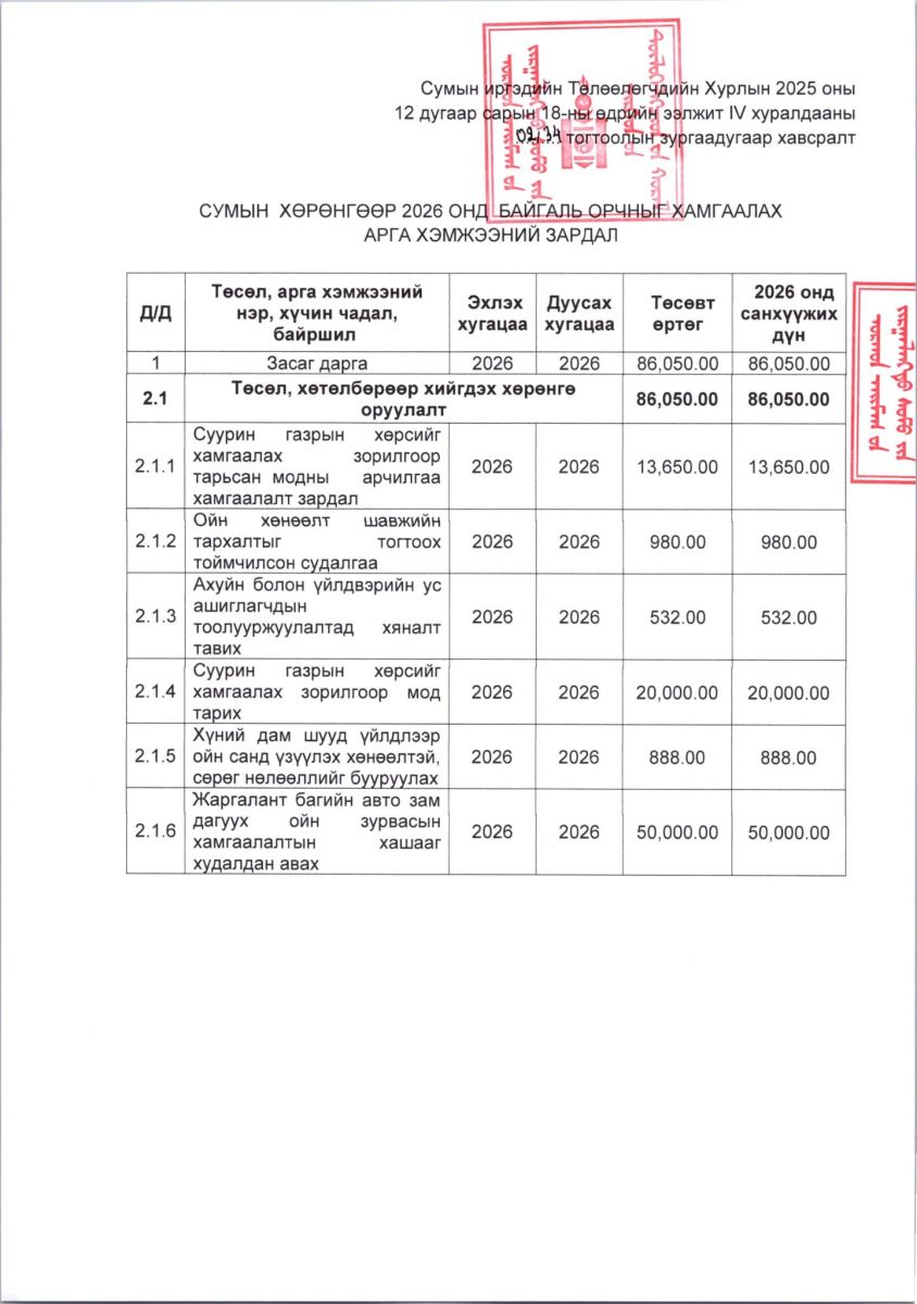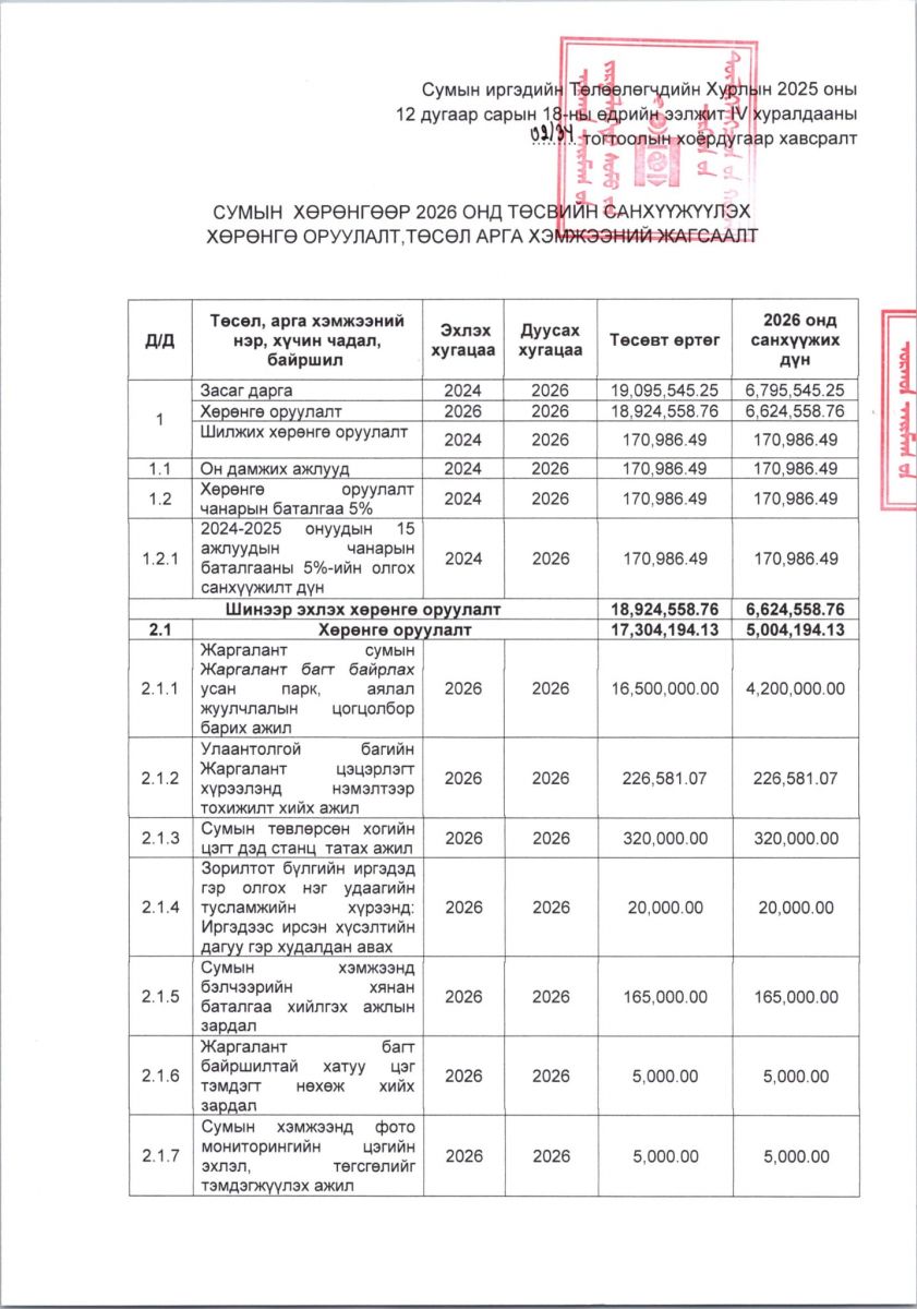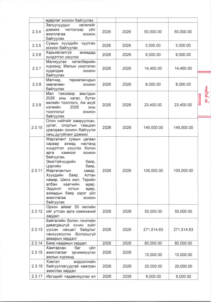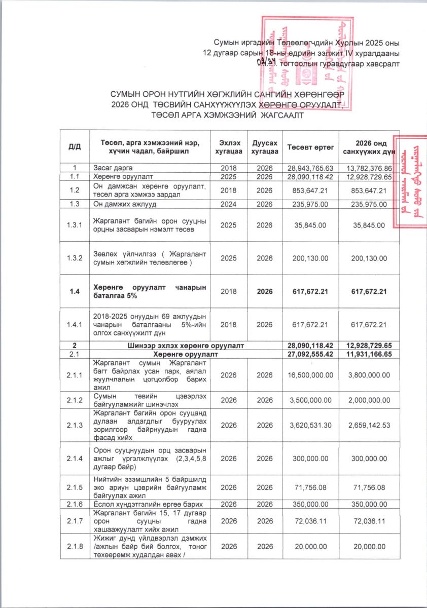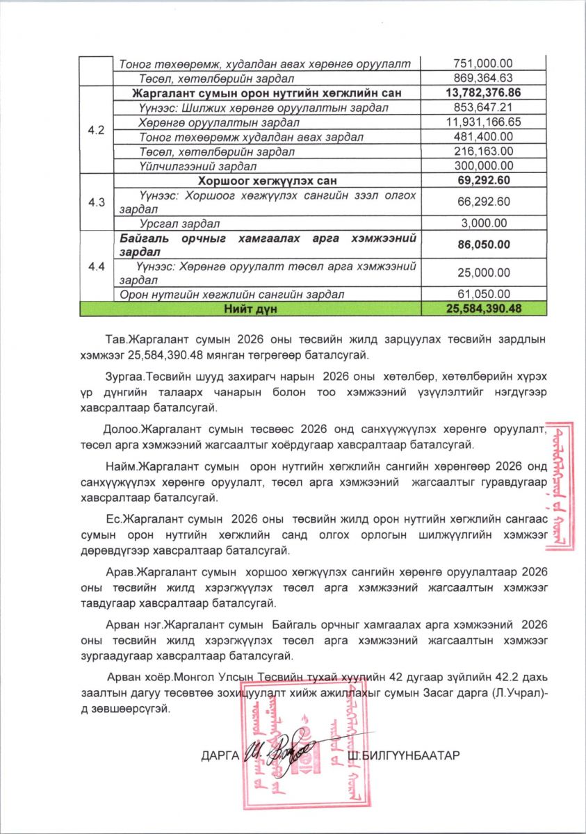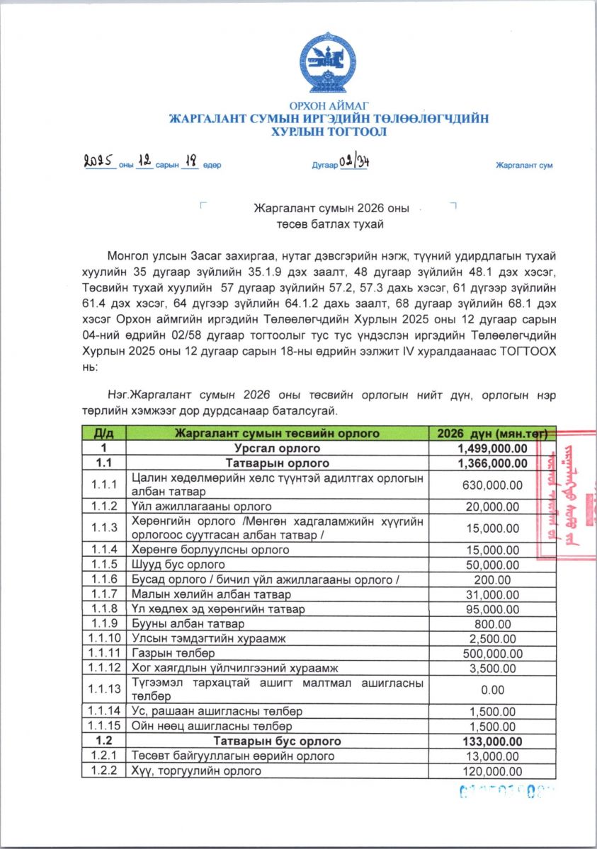 Орхон аймгийн Жаргалант сумын 2026 оны төсөв